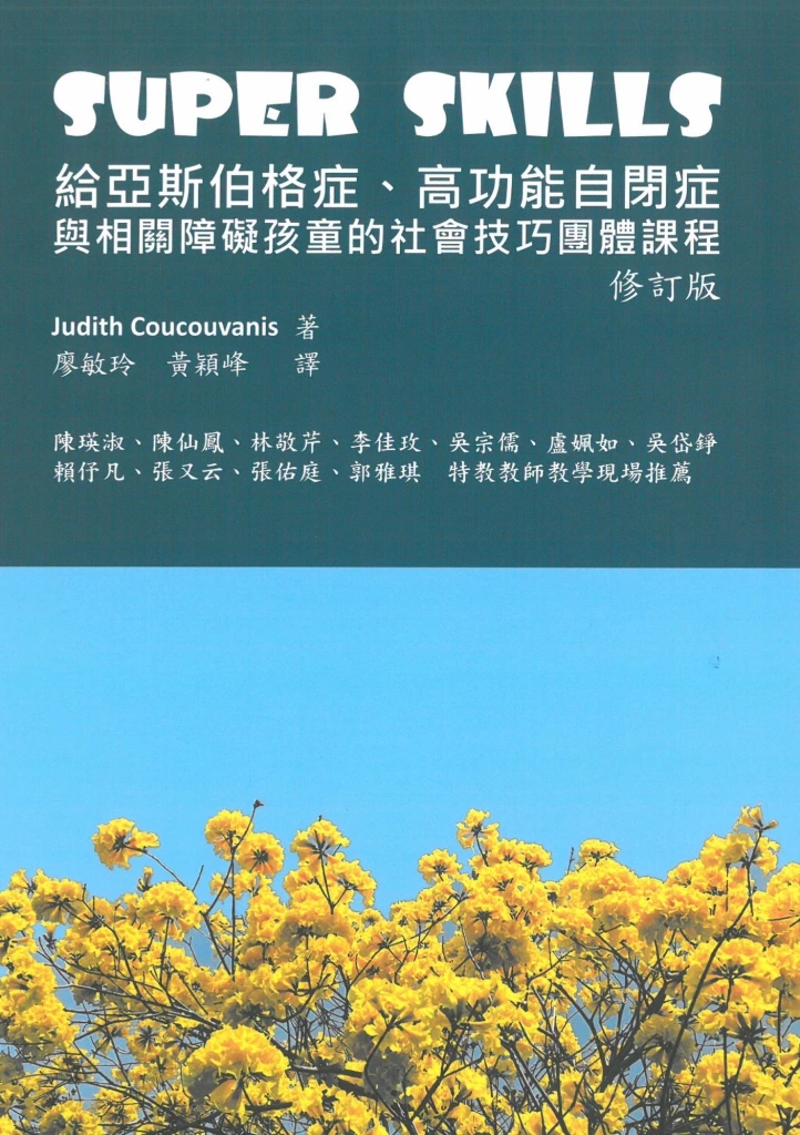 Super Skills 給亞斯伯格症、高功能自閉症與相關障礙孩子的社交技巧團體課程 (修訂版) 2022年7月修訂版上市譯者黃穎峰醫師的話:2022.07.20透過廖敏玲老師重新檢視內容,配合這近十年的推廣與教學經驗,將文字敘述仔細地改成更適合本地老師閱讀與理解的詞句,希望有助於教學活動的進行。本修訂版更珍貴的是收集了在台北、新北、新竹、宜蘭、台中、高雄第一線特教老師的現場實務經驗,希望能鼓舞更多老師一起來運用這個教學寶典。讀者看到這本書,應該會感到驚艷吧!我們採用鮮豔的黃金風鈴花加上蔚藍的天空,希望成功的社會技巧學習,能讓輕度自閉症兒童擁有更美好的人生。擁有舊版的讀者,值得再擁有修訂版;還沒買書的讀者更應該快快擁有一本增進教學雙方幸福的好書! 書籍訂購須知 1.每本書420元 ,如需寄送須負擔運費。(1)訂購2本書以內,負擔郵資65元。(2)訂購3-5本書以內,負擔郵資80元。(3)訂購5本以上者,運費需另外計算,歡迎來電詢問 04-2472-3219。2.學校機關 / 公司團體 / 個人需要訂購者,請來電確認書籍數量。並請先付款(匯款 / 劃撥 / ATM)後再寄書!【團購優惠】2023/02/14新增:Super Skills修訂版,團購優惠來了!!!即日起,只要一次購買一箱(24本)Super Skills修訂版書籍就享有8折優惠喔!歡迎來電洽詢 04-2472-3219 找黃社工*運費另計。*可接受團購訂單,收據可分別開立,但僅限寄送同一地址。 付款方式 1.郵局匯款或ATM轉帳匯款郵局:台中英才郵局郵局代碼:700戶名:社團法人台中市自閉症教育協進會匯款帳號:0021654-02922952.親自洽購請於上班時間內親自至辦公室購買週一至週五9:00-12:30、13:30-18:00地址:台中市南屯區東興路一段450號(台中市愛心家園內) 注意事項 1.完成繳費後,請將「匯款收據」以傳真或E-mail的方式提供,並註明您欲購買之相關資料(請參閱下方),或於本頁下方「訂購書籍」填寫表格。(1)數量(2)收件人姓名(3)收件人連絡電話(4)書籍寄送地址(5)收據抬頭2.為避免疏漏,請您務必來電確認,書籍將於3-5個工作天內寄送。3.聯絡電話:04-2472-3219聯絡傳真:04-2472-3214協會E-mail: taea@taea.org.tw